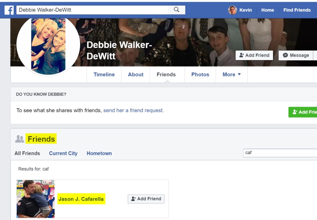 - Deborah “Debbie” Walker – DeWitt is Judge Erin Delabio’s law clerk -> FB Friends w/ Cafarella & Margulis