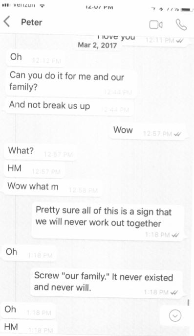 Below are the text messages of the aforementioned harassment and pressuring, as well as photos of the abuse. If you would like to see more you can CLICK HERE