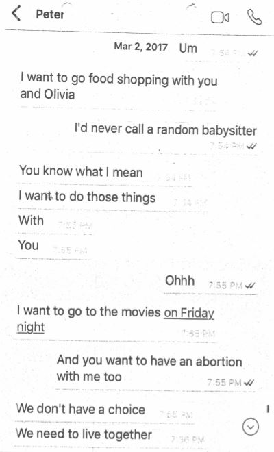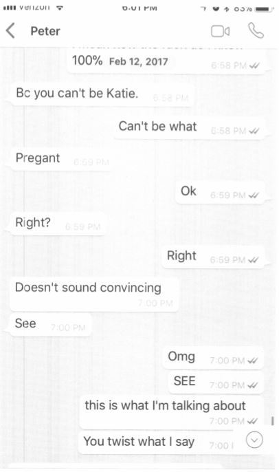 Peter Diarbakerly often put Katie Riford down by resorting to calling her profane expletives. Peter often made threats towards Katie. Peter even sent Katie a text stating “he took advantage of her while she was sleeping”. During Katie Riford’s first & second pregnancy, he constantly pressured Katie to get an abortion, even though she did not want to. Katie persevered through the severe harassment, pressuring, and physical abuse. Katie gave birth to a beautiful baby boy and girl.